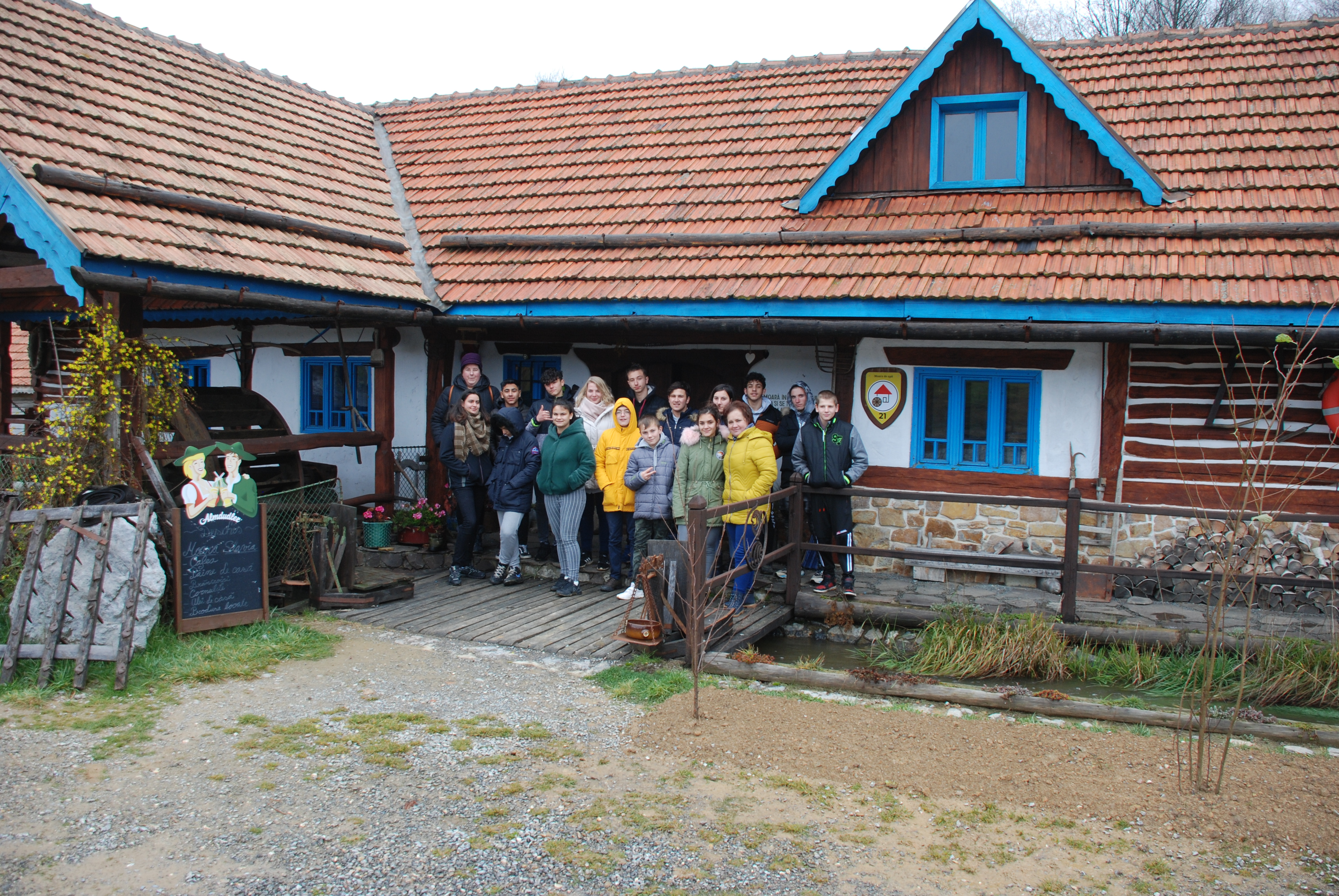 Másnap kirándulni vittük a gimnazistákat. A tömött kisbuszokban jó volt a hangulat, néha zene szólt, máskor pedig a beszélgetés, sztorizgatás. Kacskaringós szerpentinen vezetett fel az út sűrű ködben a Huta Slavia és azt körülvevő természeti környezetbe. Megnéztük a környező szabadon látogatható skanzen szerű épületeket (malom, szövőház, keramikus műhely, tó, stb.).